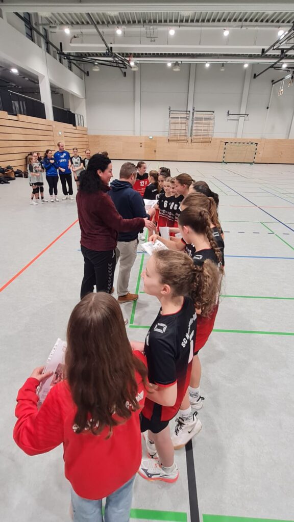 Erst die Ehrung der weiblichen D-Jugend von Huckarde-Rahm und dem Trainerteam um Julia Wolf, sowie die Ehrung des Trainerteams vom TV Asseln Anne und Max Pröpper und dann ein unterhaltsames Spiel der weiblichen D-Jugend vom Westfalenmeister 2025 Huckarde-Rahm gegen eine tapfer kämpfende D-Jugend vom TV Asseln.
