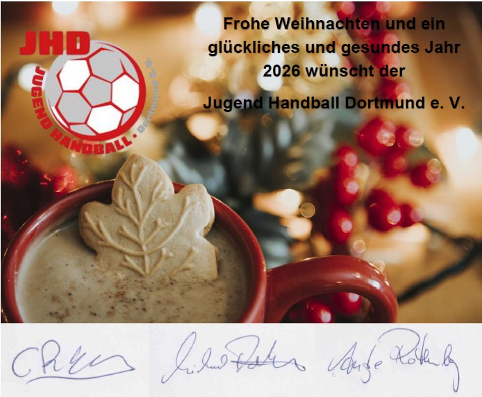 Weihnachts- und Neujahrswünsche Veröffentlicht am Dezember 21, 2025Dezember 21, 2025 von Constantin Rothenberg Der Jugend Handball Dortmund e. V. wünscht alle Mitgliedern, Sponsoren, Spendern und Interessierten ein besinnliches Weihnachtsfest und einen guten Start in das Jahr 2026.